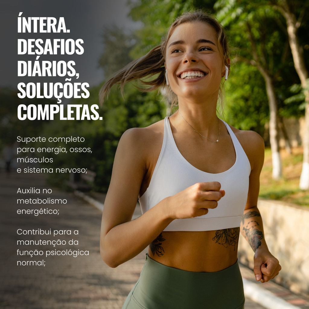 Suplemento Alimentar em Cápsulas Principais beneficios: Ajuda na formação de ossos e dentes, no metabolismo energético, no equilíbrio dos eletrólitos e no funcionamento muscular e neuromuscular. Fonte rica em magnésio. RECOMENDAÇÃO DE USO: Ingerir 2 cápsulas ao dia. INGREDIENTES: Óleo de girassol, citrato de magnésio (sais de magnésio do ácido cítrico), bisglicinato de magnésio, óxido de magnésio, malato de magnésio, água purificada, gelificante gelatina, umectante glicerol, emulsificante lecitina, estabilizante cera de abelha e corantes carbonato de cálcio e sais de potássio e sódio de clorofilina cúprica. ALÉRGICOS: Pode conter soja, leite, peixes, ovos, amendoim, amêndoa, avelãs, castanha-de-caju, castanha-do-pará, macadâmias, nozes, pecãs, pistaches, pinoli, castanhas, crustáceos (krill e caranguejo), trigo, centeio, cevada, aveia e suas estirpes hibridizadas e seus derivados. Não contém glúten Não contém quantidades significativas de carboidratos, açúcares totais, aç. adicionados, proteínas, gord. trans, fibras e sódio.
