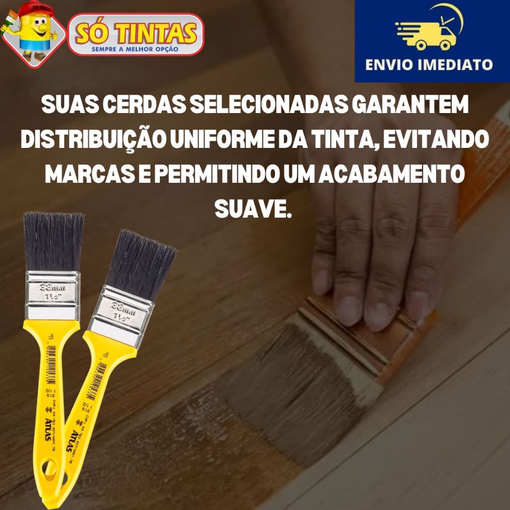 Descrição do ProdutoExperimente a Trincha com Cerdas Pretas Selecionadas, sua aliada perfeita para uma pintura impecável em qualquer projeto. Com cerdas de alta qualidade, essa trincha é ideal para aplicações de tintas esmalte sintético e à base de água, garantindo resultados profissionais em todas as suas tarefas de pintura.Indicação de UsoPerfeita para a aplicação de tintas à base de óleo e esmalte, a Trincha oferece versatilidade e desempenho, seja em projetos de acabamento em madeira, metal ou superfícies internas e externas.Imagine transformar seu espaço com acabamentos impecáveis e duradouros. Com a Trincha com Cerdas Pretas Selecionadas, você alcançará resultados dignos de profissionais, tornando cada parede ou objeto um verdadeiro destaque. A satisfação de ver a pintura perfeita, com uniformidade e brilho, traz um toque de sofisticação ao seu ambiente.Por outro lado, sem a ferramenta certa, suas tentativas de pintura podem resultar em frustração. Cerdas de baixa qualidade podem deixar marcas, falhas e desperdício de tinta, resultando em um acabamento insatisfatório e exigindo retrabalhos. Não deixe que uma trincha inadequada estrague seu projeto!A Trincha com Cerdas Pretas Selecionadas foi projetada para facilitar seu trabalho. Suas cerdas selecionadas garantem distribuição uniforme da tinta, evitando marcas e permitindo um acabamento suave. A forma ergonômica do cabo proporciona conforto e controle, permitindo que você pinte por horas sem esforço. Utilize-a em qualquer projeto, desde retoques simples até grandes áreas, e veja a diferença que a qualidade pode fazer.Benefícios e Características• Cerdas de Alta Qualidade: Cerdas pretas selecionadas que garantem uma aplicação suave e uniforme da tinta.• Versatilidade: Ideal para tintas esmalte sintético e à base de água, além de ser indicada para óleo e esmalte.• Conforto Ergonomico: Cabo projetado para proporcionar um grip seguro, reduzindo a fadiga durante o uso prolongado.• Resultados Profissionais: Proporciona um acabamento liso e livre de marcas, elevando a qualidade do seu projeto.Transforme suas experiências de pintura com a Trincha com Cerdas Pretas Selecionadas e alcance resultados impressionantes em cada projeto!Dados técnicosEspecificações do Produto• Tipo: Trincha com Cerdas Pretas• Material das Cerdas: Cerdas sintéticas selecionadas• Tipo de Aplicação: Pintura em geral• Indicações de Uso: Esmalte sintético, tintas à base de água e tinta a óleo• Cerdas: Cerdas pretas de alta qualidade para uma aplicação uniforme e sem marcas.• Cabo: Cabo ergonômico que proporciona conforto durante o uso prolongado.• Compatibilidade: Ideal para diversas superfícies, incluindo madeira, metal, e superfícies internas e externas.• Mergulho da Trincha: Mergulhe a trincha na tinta, cobrindo cerca de um terço das cerdas. Retire o excesso de tinta batendo suavemente a trincha na borda do recipiente.• Começo da Pintura: Inicie a aplicação em uma borda ou canto da superfície. Aplique a tinta com movimentos suaves e firmes, usando a ponta da trincha para atingir áreas mais detalhadas.• Movimentos Uniformes: Para melhores resultados, utilize movimentos longos e uniformes, evitando pressionar demais a trincha. Isso ajuda a evitar marcas e garante uma cobertura uniforme.• Demãos: Para uma cobertura ideal, aplique 2 a 3 demãos, respeitando o tempo de secagem entre elas (geralmente 4 horas).Principais perguntas:Acompanha nota fiscal? Sim, todos os nossos produtos são enviados com nota fiscal.O envio é por Correios? Pode ser enviado por Correios ou por transportadora privada, isso vai depender da disponibilidade das transportadoras que atendem o seu endereço.Só Tintas, sempre a melhor opção.Somos a maior rede de lojas de tintas no estado do Rio de Janeiro.Desde 1977, a Só Tintas atua no Rio de Janeiro oferecendo os melhores produtos e soluções em pintura imobiliária, automotiva e industrial. Somos uma empresa familiar que começou em Teresópolis e hoje temos mais de 30 lojas físicas. Trabalhamos de forma ética e transparente, com o principal objetivo de proporcionar aos nossos clientes um atendimento de excelência, provendo as melhores soluções. Nossa missão é levar cor para a vida das pessoas. Por isso a Só Tintas é Sempre a Melhor Opção