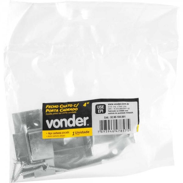 Trinco Fecho Chato Zincado com Porta Cadeado 4" Vonder - 32.90.104.001