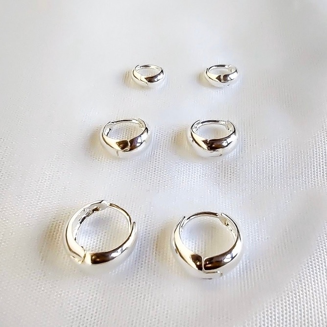 Trio Brinco de Argola Click Lisa Ouro 18K a prata 925 Antialérgico com KIT 3 pares branco