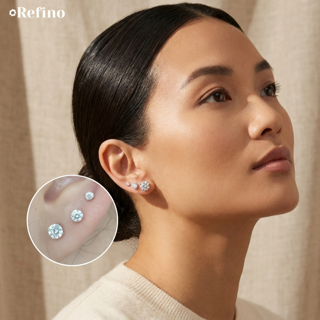 Trio Brinco Redondo Prata 925 Ponto De Luz Zircônia 3 Pares 3/4/5mm