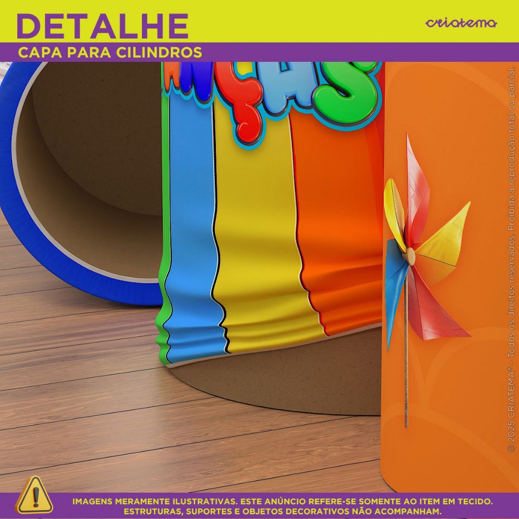 Trio Capa Cilindro Decoração Dia das Crianças Festa Infantil Veste Fácil Em Tecido Com Elástico