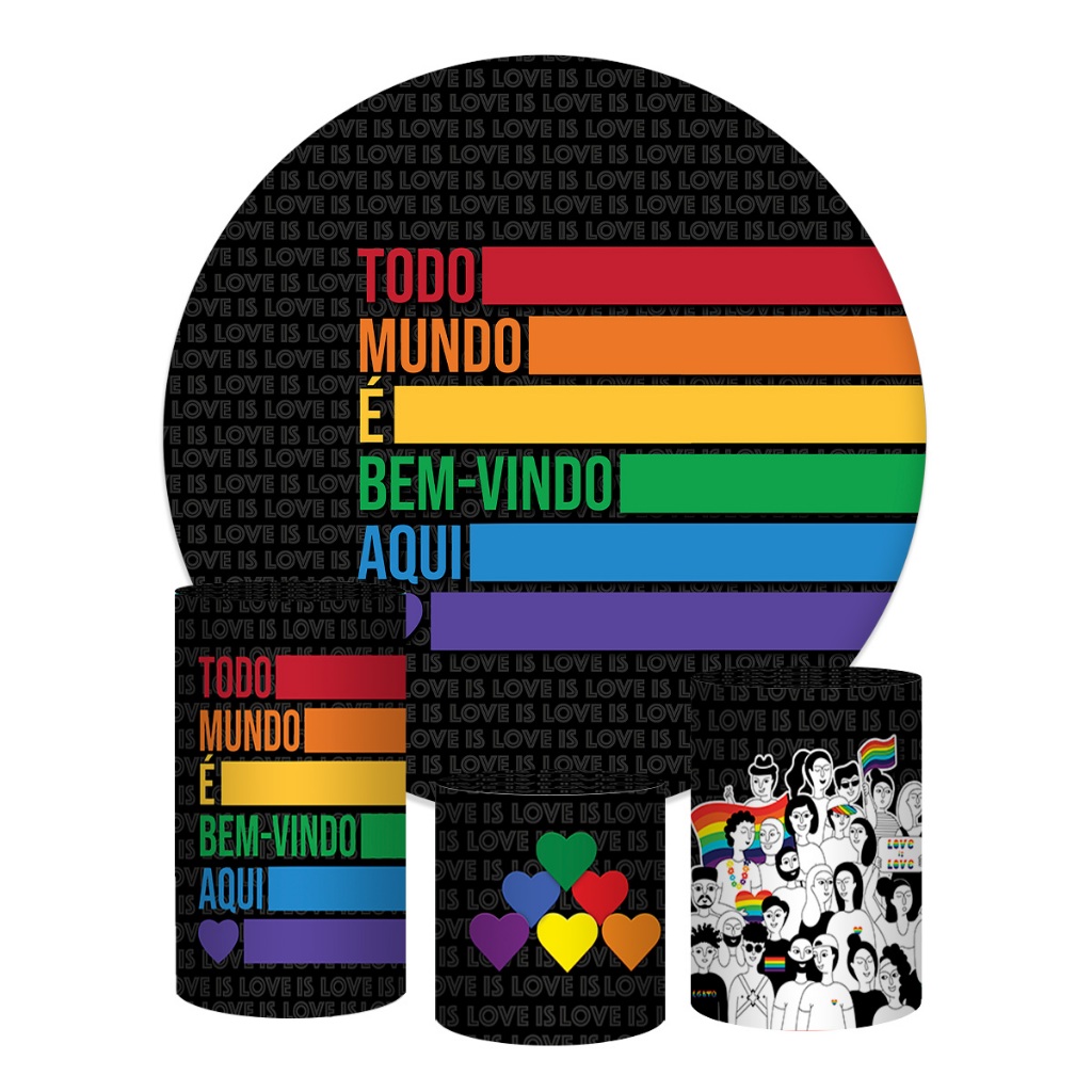 Trio Capa Cilindro + Painel Redondo Lgbtqia+ Em Tecido