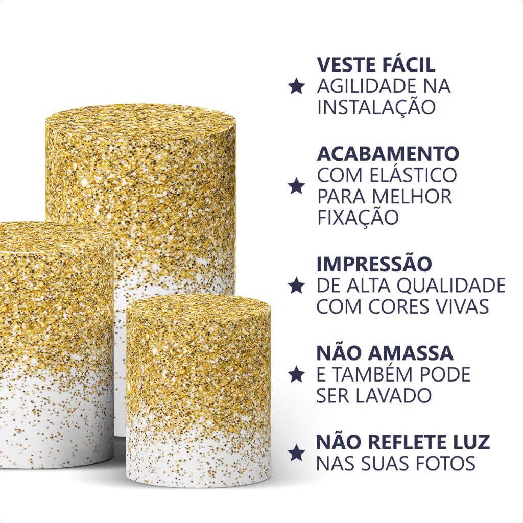 Trio Capa Cilindro Sublimado Brilho Dourado Glitter Veste Fácil
