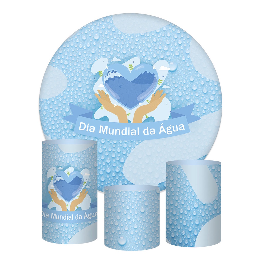 Trio Capa Cilindros + Painel Redondo Dia Mundial Da Agua Coração
