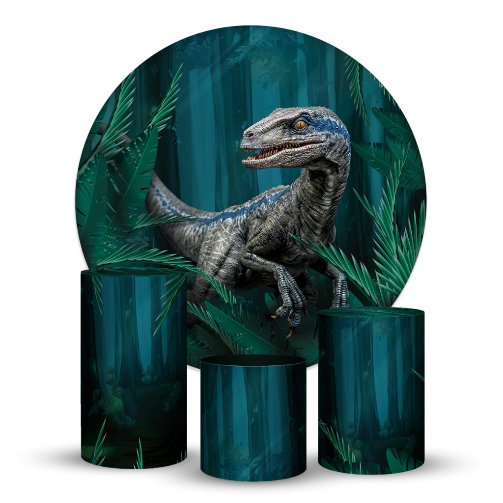 Trio Capa Cilindros + Painel Redondo Dinossauro Em Tecido