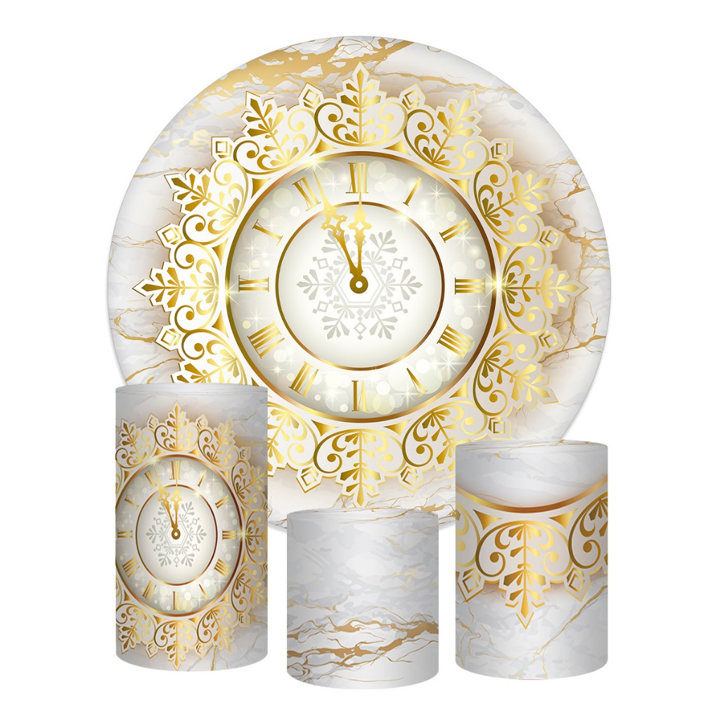 Trio Capa Cilindros + Painel Redondo Feliz Ano novo Relógio em Tecido
