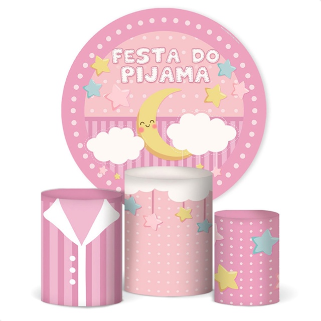 Trio Capa De Cilindro + Painel Redondo Festa Do Pijama Em Tecido Veste Fácil