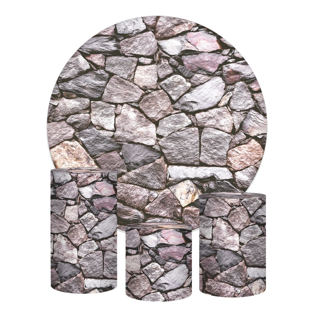 Trio Capa De Cilindros + Painel Redondo Pedras Em Tecido