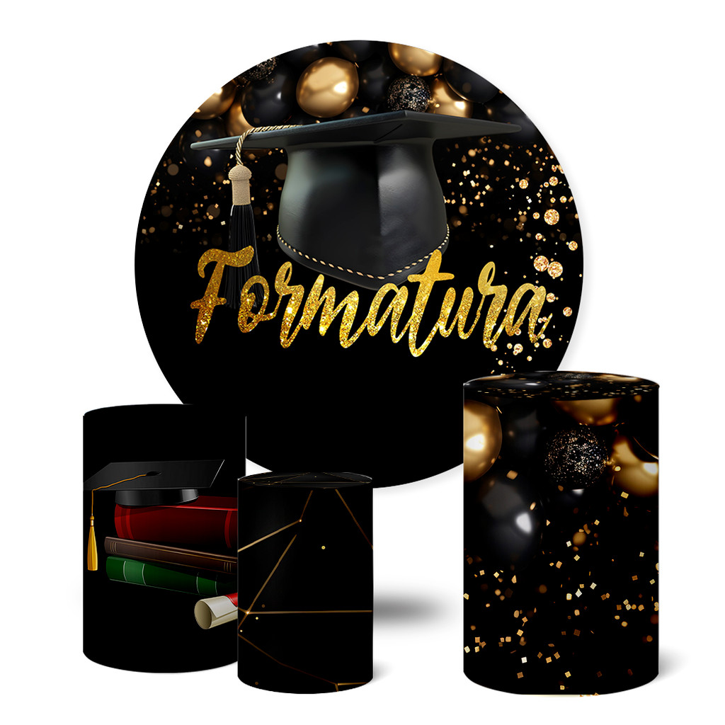 Trio Capas Cilindro + Painel Festa Sublimado 1,50m Formatura