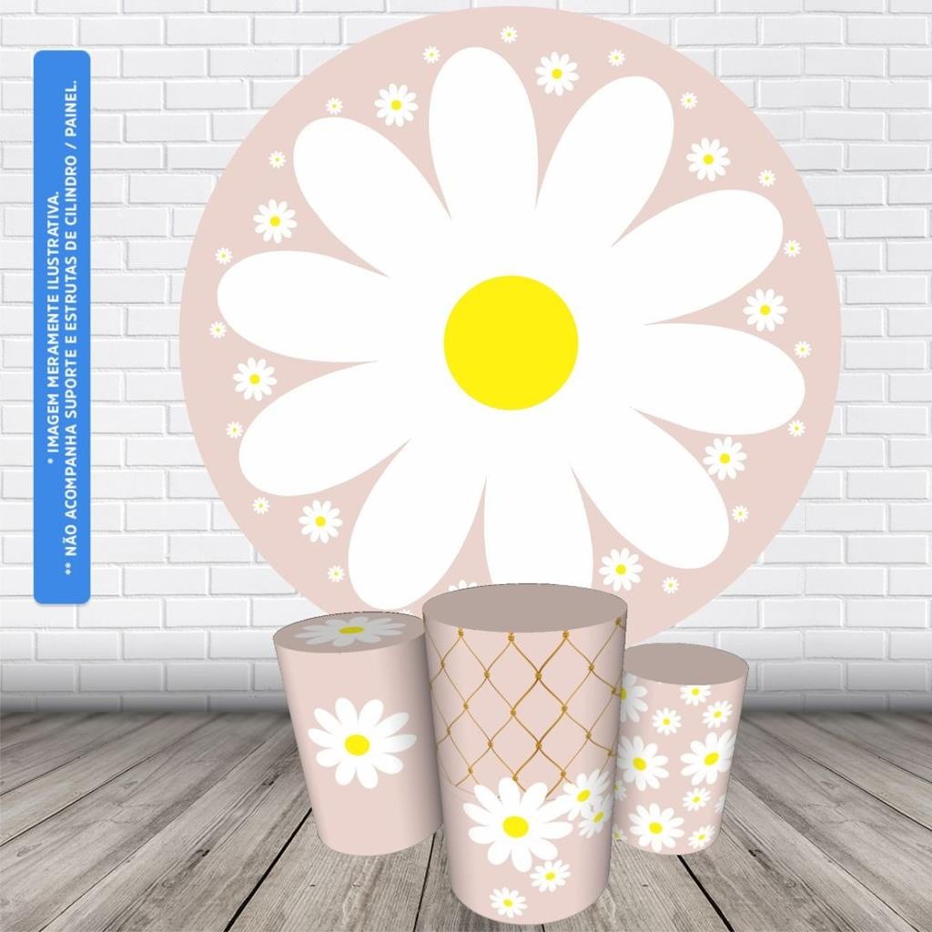 Trio Capas Cilindro + Painel Redondo 1,50m Flores Floral