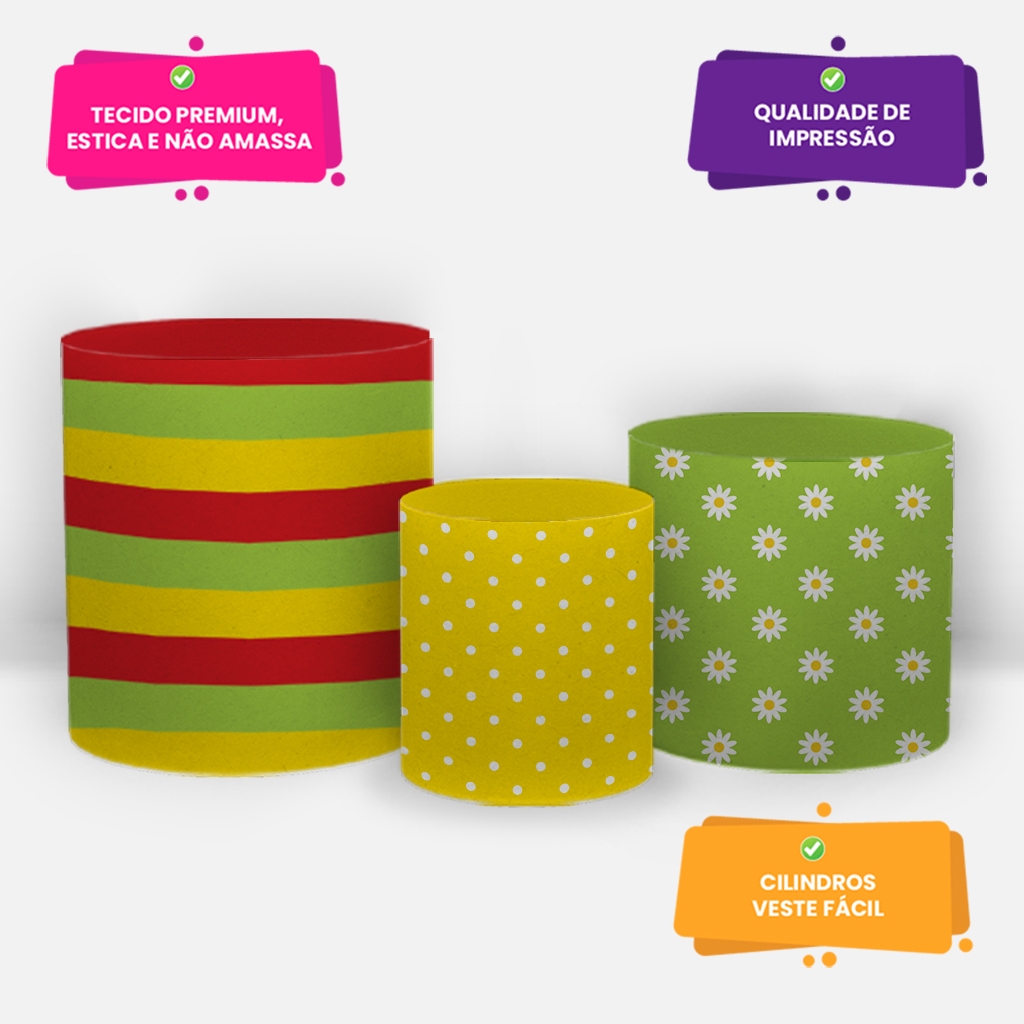| Trio Capas Cilindro Festa Junina Arraiá Em Tecido C/Elástico 3D Dec... | R$ 69,90 | 22% | 5.0/5 | — |