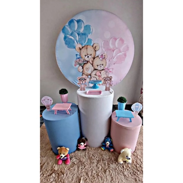 TRIO CAPAS PARA MESAS CILINDROS VESTE FÁCIL CORES - branco, azul e rosa candy colors - chá revelação