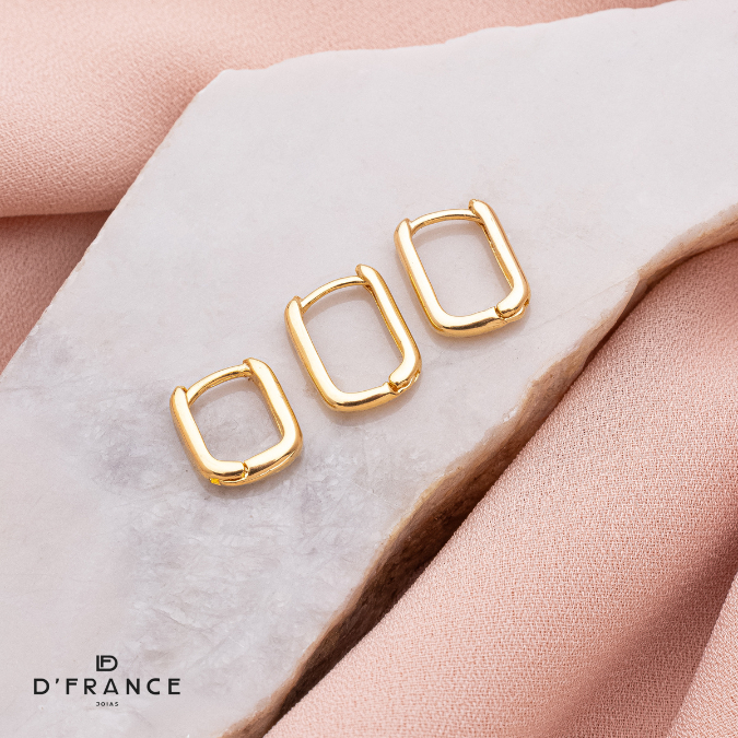 Trio De Argolas Retangulares Banhado a Ouro 18K - D France Semijoias