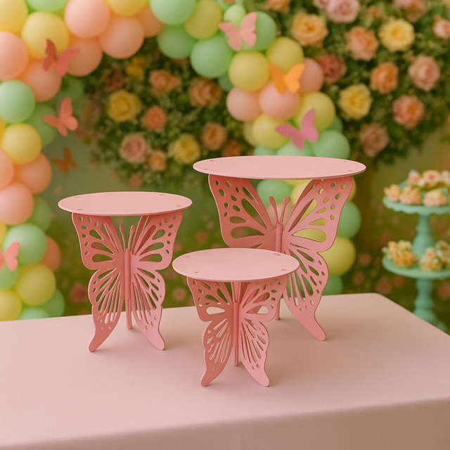 Trio de Boleiras Borboleta em MDF Jardim Encantado - Escolha sua cor