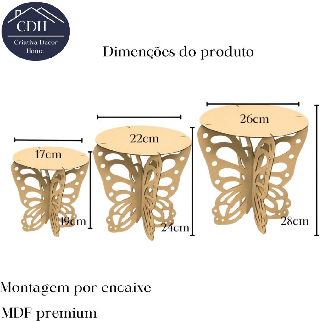 Trio de Boleiras Borboletas MDF Decoração de Festa Provençal Jardim Encantado Bolo 3 PÇ