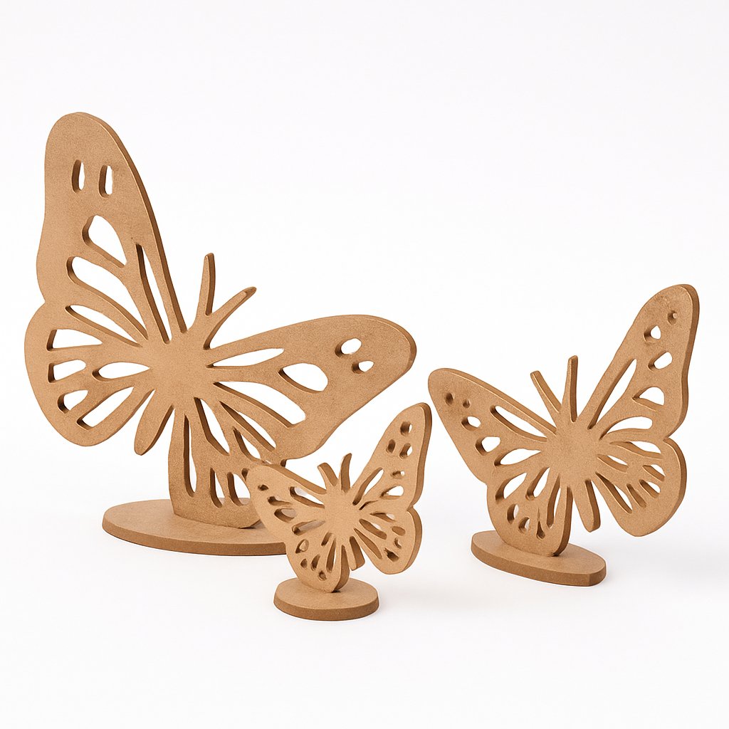 Trio de Borboletas em MDF Cru 6mm – Toque Artesanal para sua Decoração