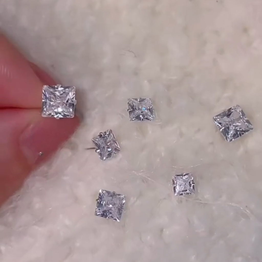 Trio de Brincos Quadrado com Zircônia em Aço Cirúrgico (3 pares) Hipoalérgico Feminino
