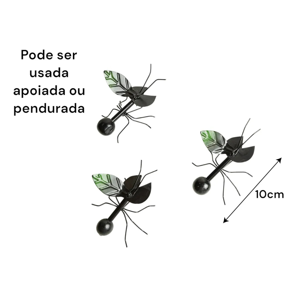 Trio de Formigas Decorativas em Ferro Esse charmoso trio de formigas é produzido em ferro, unindo resistência e estilo artesanal para compor a decoração do seu espaço. Com design criativo e acabamento delicado, as peças trazem um toque divertido e original, podendo ser utilizadas em ambientes internos ou externos. Ideal para quem aprecia detalhes únicos na decoração, o conjunto se adapta a diferentes estilos, do rústico ao moderno, tornando o ambiente mais acolhedor e cheio de personalidade.