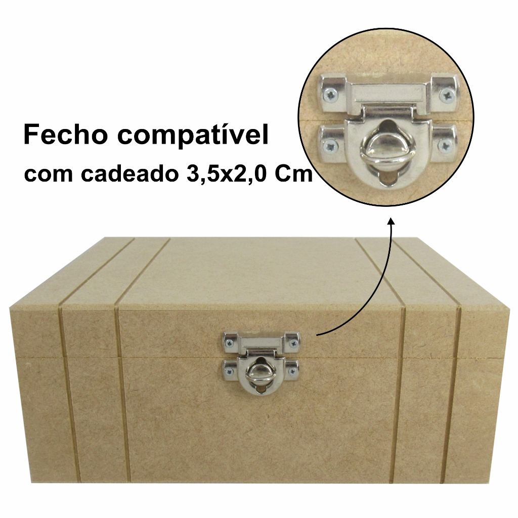 Trio de Frasqueira Baú baixa Organizador em MDF com Fecho e Dobradiça de Metal para Decoração