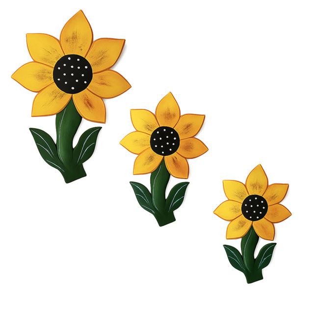 Trio de Parede Girassol Pássaros Flor | Decoração Artesanal em MDF | Escultura Rústica para Sala, Varanda e Cozinha
