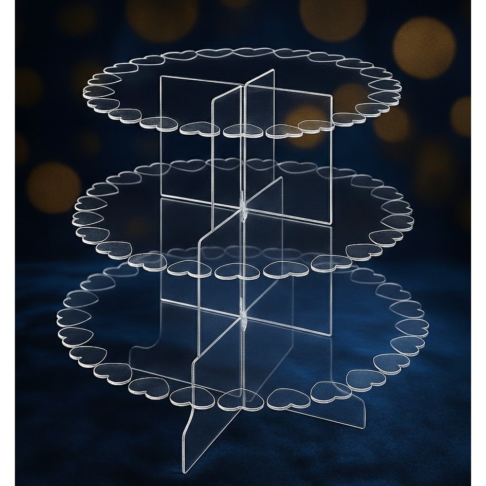 Trio Suporte Bandejas Coração em Acrílico p/ Doces Bolos Decoração Festas Eventos Mesa Lembranças Presentes