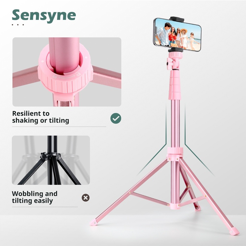Tripé/Bastão Selfie Sensyne 72" para Câmera/Celular Rosa, Controle Remoto, Suporte Telefone 1/4", Gravações, Fotos e Vlogging 1. Altura Ajustável e Flexibilidade: O Tripé Sensyne oferece uma altura máxima de 183 cm, mais alto do que a maioria dos tripés, permitindo capturar fotos e vídeos com mais opções de ângulos. Ele é fácil de transportar e ideal para uso tanto em ambientes internos quanto externos para uma ampla gama de disparos perfeitos. 2. Estabilidade e Confiabilidade: Construído em liga de alumínio premium, o Tripé Sensyne é resistente e leve, garantindo uma experiência de fotografia estável. Suas travas giratórias evitam inclinações ou oscilações indesejadas, resolvendo problemas comuns encontrados em outros tripés de bastão de selfie. 3. Suporte de Telefone Versátil e Seguro: O clipe de telefone apresenta um design de orifício duplo e uma camada de proteção de borracha, garantindo uma aderência macia e antiderrapante que protege seu dispositivo contra quedas. Compatível com a maioria dos celulares, o suporte ajustável oferece ótima versatilidade. 4. Controle Remoto Sem Fio Prático: O controle remoto sem fio oferece compatibilidade com smartphones iOS e Android, permitindo capturar fotos ou vídeos à distância com um alcance de até 10 metros, ideal para selfies, vlogs, transmissões ao vivo e fotos de família, oferecendo mais comodidade e praticidade para suas produções. 5. Versatilidade para Diversas Aplicações: Seja para gravações de vídeos, sessões fotográficas ou transmissões ao vivo, o Tripé/Bastão Selfie Sensyne é a escolha ideal para criadores de conteúdo, influenciadores e fotógrafos. Perfeito para resultados profissionais. Garantia 90 dias