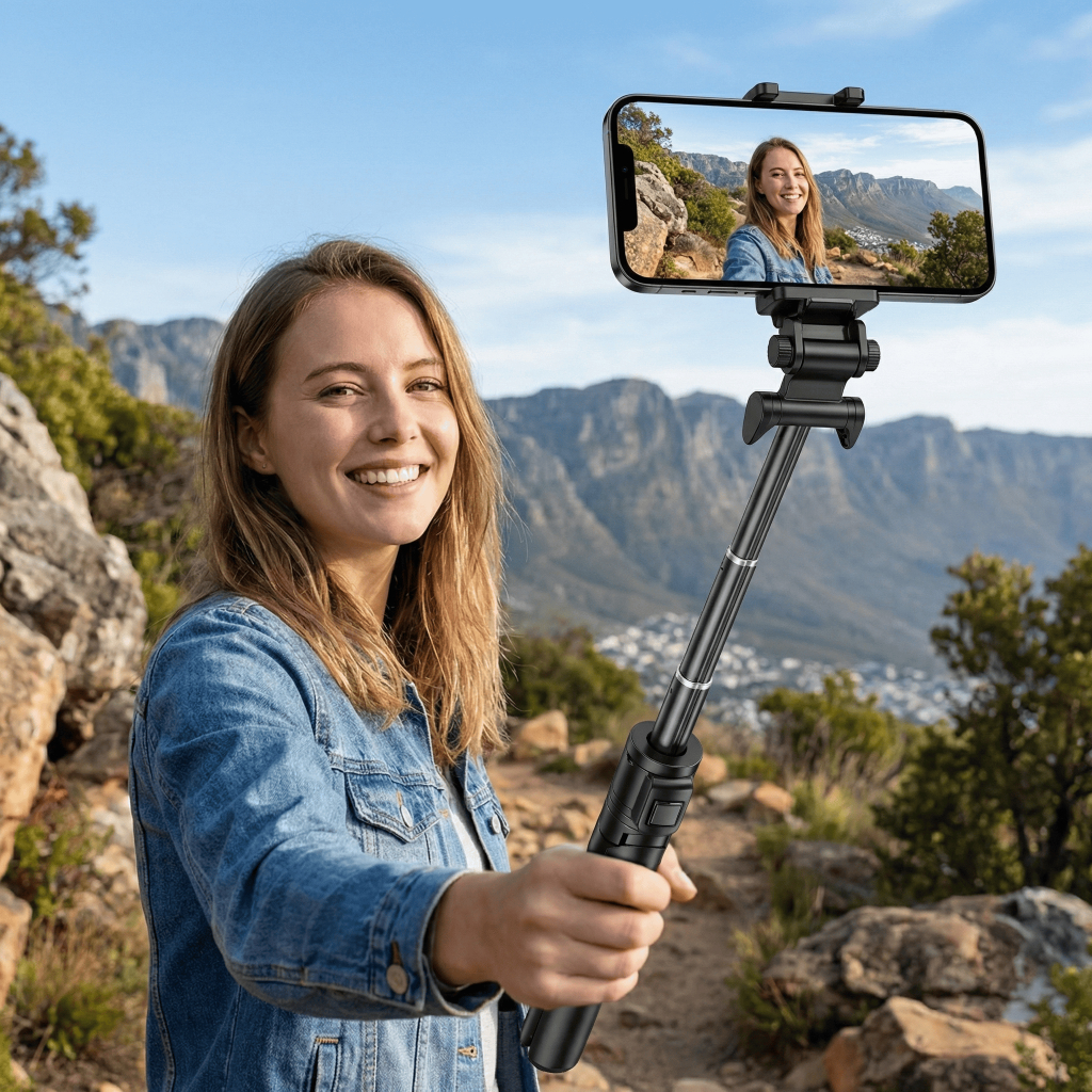 Tripé Selfie para Celular com Controle Sem Fio e Luz LED – Selfie Stick Ajustável para Fotos e Vídeos