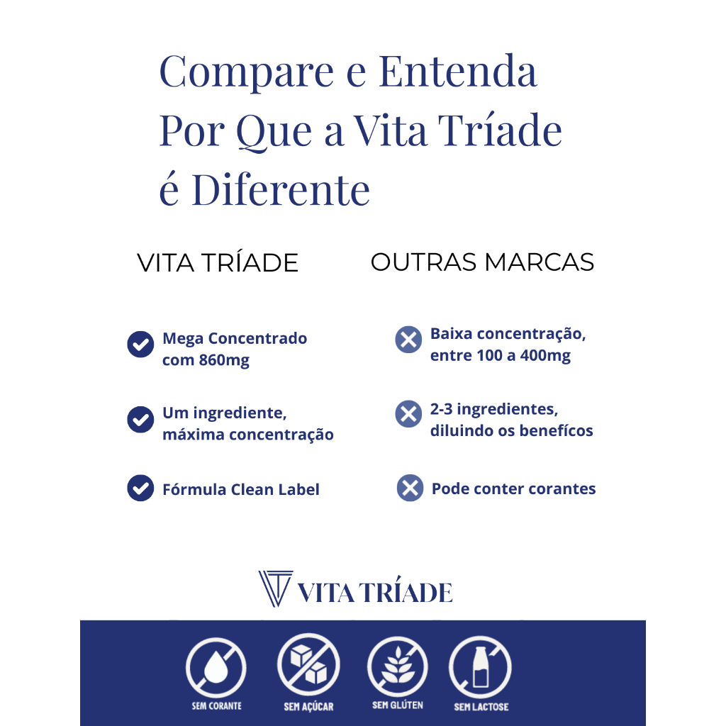Selecione a quantidade de potes dentro do anúncio. Disponíveis potes com 60 cápsulas, 120 cápsulas e 180 cápsulas. O Triptofano Mega Concentrado Vita Tríade (860mg) foi desenvolvido para entregar alta concentração em cápsulas, sem aditivos artificiais, sem glúten, lactose, corante ou açúcar. Escolha o suplemento que realmente atende às suas necessidades com qualidade e concentração superior. Muitos consumidores recorrem a suplementos de triptofano para complementar a rotina. Porém, a maioria das marcas no mercado oferece baixa concentração (100 a 400mg por dose) e adiciona ingredientes desnecessários, diluindo os benefícios. Essas fórmulas comuns não entregam a concentração adequada, fazendo com que o consumidor precise ingerir várias cápsulas para chegar à dose recomendada pela ciência. Além disso, muitas contêm corantes, açúcares ou lactose, o que pode ser um problema para quem busca pureza na suplementação. O uso contínuo de produtos de baixa concentração gera custo maior a longo prazo, resultados limitados e insatisfação do consumidor, que muitas vezes abandona a suplementação por não perceber valor real. _____________________________________________________ DÚVIDAS FREQUENTES 1. Como funciona o L-Triptofano? O L-Triptofano é um aminoácido essencial que o corpo usa para produzir serotonina, o neurotransmissor responsável por regular o humor e o sono. 2. Posso tomar Triptofano todos os dias? Sim, o L-Triptofano pode ser usado diariamente. No entanto, recomenda-se seguir a dosagem indicada no rótulo ou conforme orientação médica. 3. Triptofano o que é? É um aminoácido essencial que o corpo não produz, sendo necessário obtê-lo através da alimentação ou de suplementos. _____________________________________________________ SUGESTÃO DE USO • Ingerir 2 cápsulas ao dia, preferencialmente à noite _____________________________________________________ AVISO LEGAL • Idade mínima recomendada: 19 anos. • Este produto não pode ser consumido por gestantes, lactantes e criança • Este produto é um suplemento alimentar. Consulte um profissional de saúde antes de iniciar qualquer suplementação. _____________________________________________________ INFORMAÇÕES IMPORTANTES • Gostou? Avalie e ajude outras pessoas a escolherem! • Siga a loja e receba cupons e novidades em primeira mão. • Conheça nossos outros produtos clicando em "Ver página da loja".