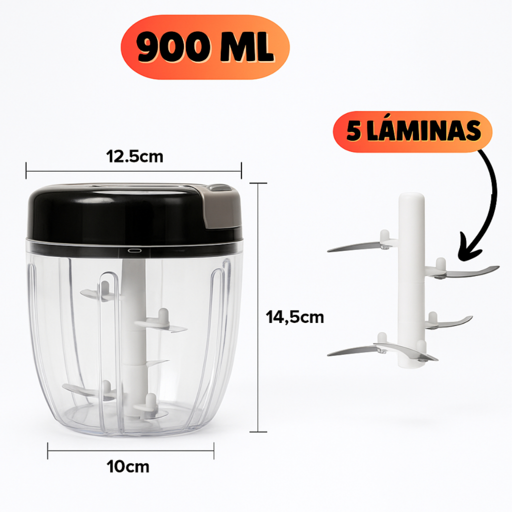 🔪 Processador Manual 900 ml com 5 Lâminas – Pratico, Rápido e Sem Esforço! Chega de perder tempo na cozinha com cortes demorados! Com o nosso processador manual de 900 ml, você prepara temperos, saladas, frutas, legumes, alho, cebola e muito mais em poucos segundos! ✨ Por que escolher esse modelo? ✅ Capacidade ideal de 900 ml – perfeito para o dia a dia ✅ 5 lâminas afiadas de aço inox – corta com eficiência e uniformidade ✅ Sistema de corda retrátil – puxe e pronto! Sem energia, sem complicações ✅ Tampa vedada + base antiderrapante – segurança e estabilidade no uso ✅ Fácil de limpar e guardar – praticidade que você merece! 💡 Ideal para quem busca agilidade na cozinha sem abrir mão da eficiência! 🛒 Aproveite agora e leve mais praticidade para sua rotina. Enviamos com todo cuidado e rapidez!