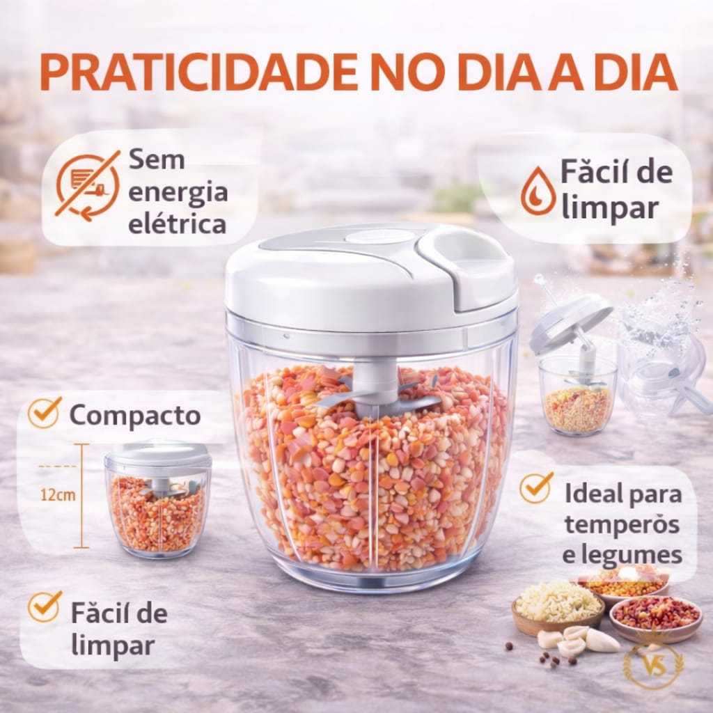 Triturador Manual de Alimentos 900ml | Mini Processador de Alho, Cebola e Legumes O triturador manual de alimentos é um dos utensílios mais práticos para a cozinha. Com sistema de corda manual, ele permite triturar alimentos em poucos segundos, sem precisar de energia elétrica. Ideal para quem busca mais praticidade e rapidez no preparo de temperos e alimentos no dia a dia. Perfeito para triturar: ✔ alho ✔ cebola ✔ legumes ✔ verduras ✔ temperos naturais 🔪 Praticidade para o dia a dia Com lâminas afiadas e resistentes, o triturador manual corta e mistura os alimentos rapidamente, economizando tempo na cozinha. Seu sistema manual é simples de usar: basta puxar a corda para triturar os alimentos de forma rápida e uniforme. ✔ Principais vantagens • Uso manual (não precisa de energia elétrica) • Capacidade de 900ml • Lâminas resistentes em aço • Fácil de desmontar e lavar • Compacto e prático para qualquer cozinha 📦 Modelos disponíveis neste anúncio Escolha o modelo desejado antes de finalizar a compra: • 900ml Unitário • Kit 900ml + 500ml • Kit 2x 900ml 📦 Conteúdo da embalagem • Triturador Manual 900ml ou • Kit conforme modelo selecionado 🚚 Envio rápido Produto novo e à pronta entrega. Postagem rápida após a confirmação da compra. Em caso de dúvidas, utilize o chat.