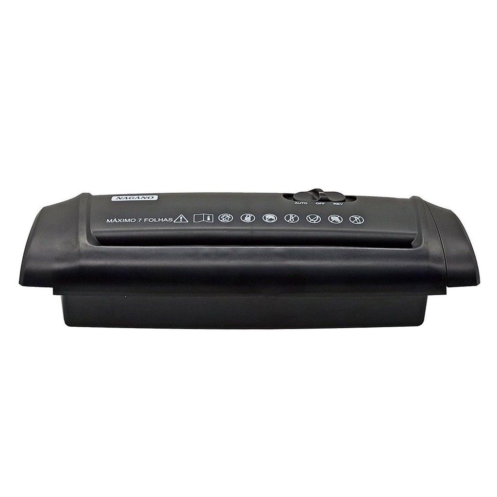 Fragmentadora de papel com capacidade de até 06 folhas. Equipamento destinado para uso doméstico ou em escritório. *Leia sempre o manual de instruções. **Não acompanha cesto. Estilo de Corte: corte em tira Nível de segurança P-2 (Norma DIN 66399) Botão com 3 posições Auto/Off/Rev Sensor automático de presença de papel Proteção contra super aquecimento do motor Ciclo de trabalho: Periódico: de 2 min. (De acordo com a temperatura ambiente) 40 min. Repouso Largura da entrada: 220mm Capacidade: 06 folhas (A4) Dimensões: Largura: 33,6cm Profundidade: 11,5cm Altura: 6,67cm