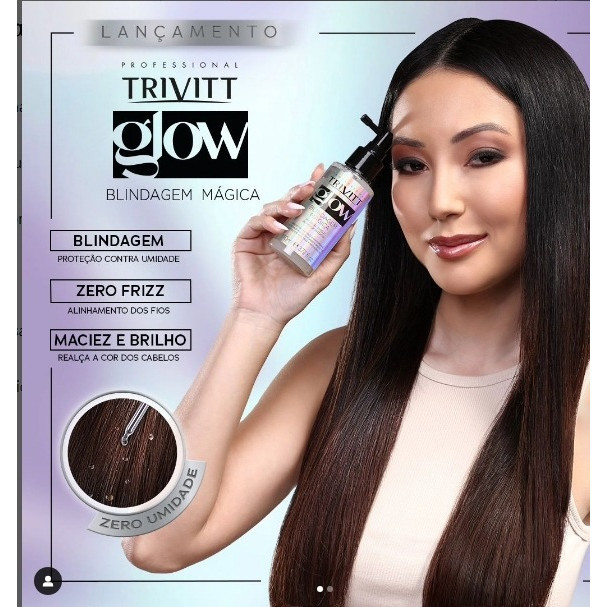 Trivitt Glow 110ml Blindagem Mágica: Brilho e proteção para seus cabelos! Cabelos radiantes e blindados contra os danos do dia a dia! O TRIVITT GLOW é um produto que todo profissional precisa ter! Com seu efeito de blindagem ele é zero umidade, zero frizz e realça os fios com brilho espelhado! TRIVITT GLOW - porque você merece brilhar! O Trivitt Glow 110ml Blindagem Mágica é um tratamento completo para seus cabelos, que proporciona: Brilho intenso e duradouro: Deixa seus cabelos com um brilho natural e radiante que dura o dia todo. Hidratação profunda. Profundamente os fios, combatendo o ressecamento e proporcionando maciez e flexibilidade. Proteção contra agressores externos: Blindagem Mágica cria uma película protetora nos fios, que os protege dos danos causados por raios UV, poluição e outros agentes externos. Fortalecimento e reparo: Auxilia na reparação de danos causados por processos químicos, como colorações e descolorações, deixando os cabelos mais fortes e saudáveis. Fios mais macios e fáceis de pentear: Reduz o frizz e facilita o penteado, deixando os cabelos mais macios e disciplinados. Ideal para todos os tipos de cabelo, especialmente para cabelos secos, danificados ou quimicamente tratados. . Trivitt Glow 110ml Blindagem Mágica: Cabelos radiantes e blindados em um único produto! Experimente agora e comprove a diferença! Garantia do vendedor: 30 dias Garantia do vendedor: 30 dias
