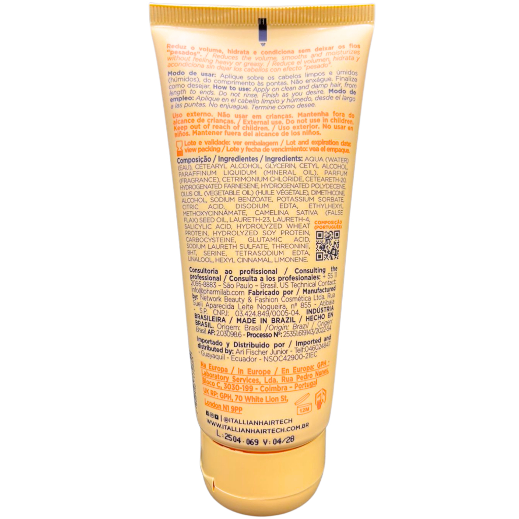 LEAVE-IN HIDRATANTE TRIVITT 200mL DESCRIÇÃO: Reduz o volume com hidratação e condicionamento sem pesar nos fios. A fórmula do Leave-in Hidratante Trivitt protege do frizz ao longo do dia e conserva a hidratação no interior da fibra por mais tempo para que o cabelo fique macio, desembaraçado e com brilho. ATIVOS: Filtro Solar: absorve de forma eficiente a radiação UV-B. Protege os fios contra os danos provocados pela radiação UV-B. É resistente à água. Queratina: os cabelos são constituídos principalmente por essa proteína, composta por uma sequência de 18 aminoácidos interligados por pontes de hidrogênio, dissulfeto (enxofre) e salinas. Como é hidrolisada, apresenta baixo peso molecular, o que facilita sua penetração através das cutículas. Deposita-se sobre as regiões que apresentam danos, restaurando os fios Reequilibra o teor de água e a distribuição de cargas elétricas da fibra capilar Após penetrar através das cutículas, mantém as mesmas seladas (pH adequado para o fechamento das escamas) Óleo de Camelina Dourada: ingrediente de origem 100% vegetal, obtido da planta “Gold of Pleasure” (Camelina sativa). Fornece a proporção ideal de Ômegas 3 e 6 para restaurar o teor lipídico (oleosidade natural) da fibra capilar Combate o toque áspero dos cabelos ressecados e fragilizados Recupera a elasticidade e flexibilidade dos fios MODO DE USO: Espalhe sobre as mãos uma quantidade suficiente do produto e aplique sobre os cabelos limpos e úmidos, do comprimento às pontas. Não enxágue. Deixe secar naturalmente.