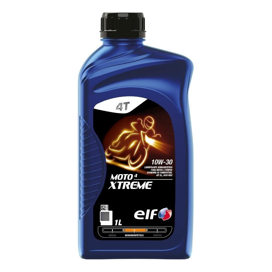 O óleo de motor Elf Moto 4 Xtreme 10W-30 é particularmente recomendado para todos os tipos de motores 4-Tempos de alto desempenho 100% compatível com combustíveis sem Chumbo e não prejudicam os sistemas catalíticos. Ajuda significativamente na redução das emissões e consumo de combustível, perfeitamente adaptado para utilização em vias urbanas assim como em rodovias sob altas velocidades e por longos períodos. Especificações Internacionais - API SL - JASO MA2 Características - Boa estabilidade térmica e resistência à oxidação - Garante a máxima proteção do motor - Economiza combustível reduzindo a emissão de CO2 - Alta resistência do filme de óleo que garante o bom funcionamento da embreagem - Evita a formação de verniz e depósito - Indicado para motos acima de 600 cc. O ELF MOTO 4 XTREME 10W-30 disponibiliza: - Significativa economia de combustível e redução das emissões de CO2 - Melhor proteção contra o desgaste e depósitos em altas temperaturas - Longa duração do controle do atrito para o sistema de embreagem úmida - Durabilidade estendida mesmo sob condições severas de condução Os óleos de baixa viscosidade ajudam na redução do “footprint” ambiental (menor consumo de combustível, diminuição das emissões e consequentemente menor emissão dos gases que causam o efeito estufa) gerado pela sua motocicleta. Também garante que o seu motor, transmissão e demais componentes sejam bem lubrificados desde o momento de partida, o que promove uma maior vida útil. Benefícios: - Menos combustível mais quilometragem: ELF MOTO 4 XTREME 10W-30 pode gerar economia de combustível em até 5% em comparação com um lubrificante de viscosidade convencional, 10W-40. Consequentemente aumenta o alcance do veículo e ao mesmo tempo ajuda a preservar o meio-ambiente. - Suavidade de condução: Fluidez e viscosidade estáveis resultam no ótimo desempenho do sistema de embreagem: garante resposta imediata do motor e executa a mudança entre marchas com suavidade. - Benefícios de longa duração: Para uma maior confiabilidade e fácil manutenção, ELF MOTO 4 XTREME 10W-30 mantêm-se igualmente fluido entre as trocas de óleo. Isto previne a formação de verniz e perda da alta capacidade antidesgaste evitando a formação de cavidades por arrancamento. Número de registro de producto de ANP - 15599