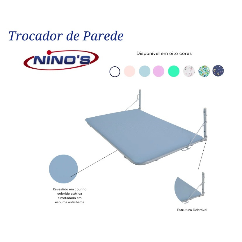 Trocador de Parede para Bebê Dobrável Ninos O Trocador de Parede Dobrável Ninos é a solução perfeita para quem busca funcionalidade, segurança e organização no cuidado diário do bebê. Ideal para espaços compactos, este trocador economiza espaço ao ser dobrado após o uso, mantendo o ambiente prático e arrumado. Características Principais: Design Dobrável: Otimiza o espaço, sendo perfeito para residências, escolas e igrejas. Estrutura Resistente: Fabricado em tubo de aço com acabamento em pintura epóxi, garantindo durabilidade e segurança. Conforto para o Bebê: Fundo acolchoado com espuma macia e revestimento em courino, fácil de limpar e confortável. Dimensões: 73 cm (comprimento) x 52 cm (largura). Suporta até 10 kg (desde que instalado corretamente). Benefícios: Instalação Simples: Kit de fixação e instruções detalhadas inclusas. Versatilidade: Ideal para diversos ambientes, como apartamentos e escolas. Estilo Moderno: Design que combina com qualquer decoração infantil. Modo de Uso: Dobrar: Destrave as laterais e feche o trocador contra a parede. Usar: Abra a mesa e trave as laterais para estabilidade durante o uso. Inclui: 1 Trocador Dobrável Ninos. Kit de Fixação completo. Transforme sua rotina de troca de fraldas com o prático e elegante Trocador de Parede Dobrável Ninos! Adquira já o seu e tenha mais praticidade e segurança no dia a dia! Aviso! Direitos Autorais Todo o conteúdo deste anúncio é protegido por Leis de Direitos Autorais. Nenhuma parte pode ser reproduzida, distribuída, modificada ou utilizada para fins comerciais sem a permissão prévia e por escrito do titular dos direitos autorais Ninos.