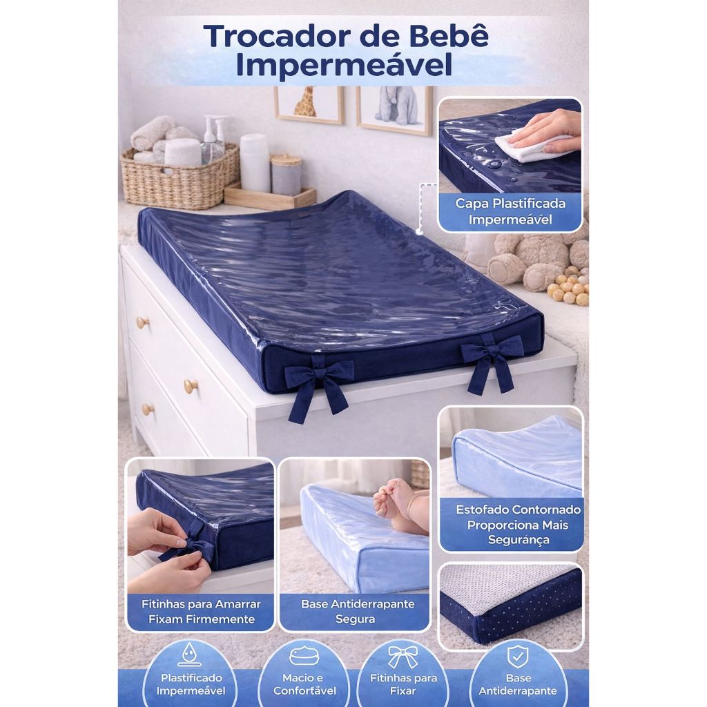 *****ENVIO IMEDIATO****** Trocador de Bebê Acolchoado com Capa Plástica – Praticidade, Conforto e Proteção Deixe a rotina de cuidados com o seu bebê muito mais prática e segura! Este trocador acolchoado foi desenvolvido para oferecer conforto durante as trocas de fralda, além de facilitar a limpeza no dia a dia graças à sua capa plástica transparente. ✨ Diferenciais do produto: * Estrutura firme com espuma macia que garante conforto ao bebê * Laterais elevadas que ajudam na segurança durante o uso * Capa plástica em PVC transparente, fácil de higienizar * Tecido percal de qualidade, resistente e durável * Ideal para usar em cômodas, trocadores e bancadas 📏 Medidas do Produto: Comprimento: 55 cm Largura: 40 cm Altura: 8 cm ⚠️ Produto enviado aberto — NÃO VAI DOBRADO! 🧵 Composição: Enchimento: Espuma 100% Poliuretano Tecido: Percal 80% Algodão e 20% Poliéster Revestimento: Plástico PVC Transparente Perfeito para compor o enxoval do bebê com conforto, proteção e praticidade, tornando cada troca mais segura e tranquila para você e seu pequeno. 🧸✨