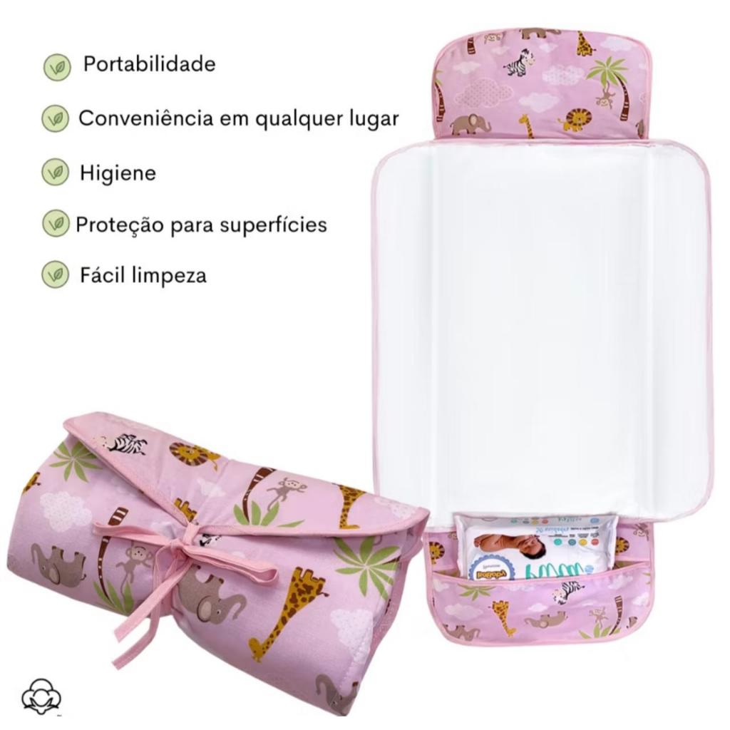 Trocador de Fralda Portátil Impermeável Acolchoado com Bolso