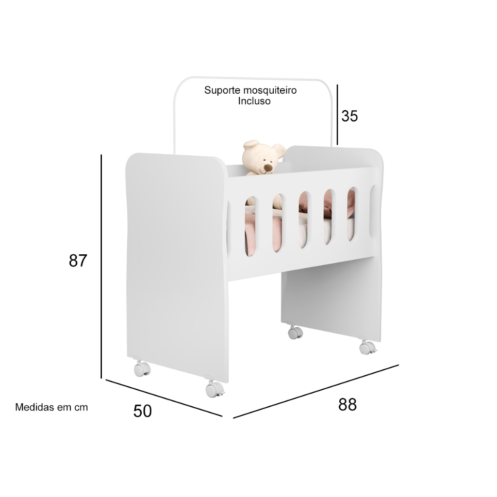 O Mini Berço Bedside Trocador convencional e funcional é queridinhos das mamães com design moderno e recursos práticos. Essa verdadeira joia da maternidade estão conquistando corações e quartos de bebês ao redor do mundo. São tendência no mercado, uma opção perfeita para quem busca praticidade sem abrir mão do conforto, além de inovador é ideal para proporcionar aconchego aos pequenos desde os primeiros dias de vida. Um charme irresistível! Uma escolha versátil que promete surpreender com sua funcionalidade única. Tem uma grande novidade ele se transforma em um lindo trocador para você aproveitar ao máximo seu produto. Descrições Mosqueteiro de aço Incluso no produto Bordas arredondadas Grades de proteção lateral 2 rodízios com trava e 2 rodízios sem trava Colchão incluso no produto Dimensões do Produto: Altura: 87 cm Comprimento: 88 cm Profundidade: 50 cm