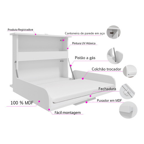 | Trocador de Parede Dobrável Branco com Pistão a Gás Colchão MDF Com... | R$ 395,01 | 1% | 5.0/5 | — |