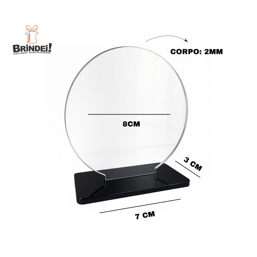 Troféu Mini Redondo 8cm Acrílico Cristal 2mm C/base Preta Kit 5 - 10 - 15 Unidades