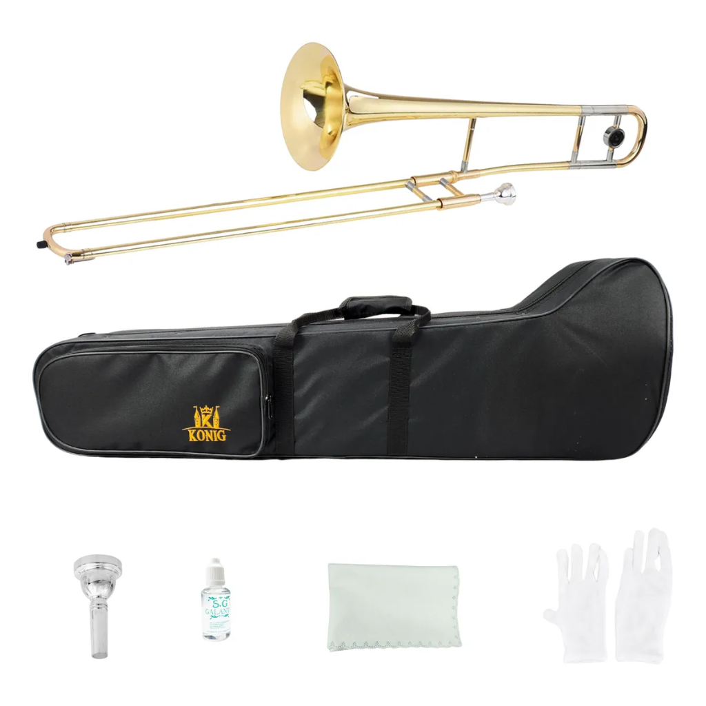 Trombone de vara Konig Itens Inclusos: 1 Trombone de Vara Konig Classic Series 1 Estojo 1 Óleo 1 Luva 1 Flanela