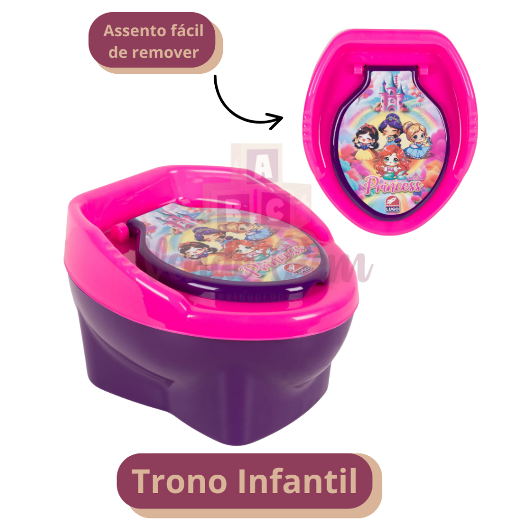 O Troninho transforma a transição da fralda para o vaso sanitário em uma experiência positiva, recompensadora e divertida. O divertido e fundamental para o aprendizado da criança. Prático e portátil, atende com segurança e conforto crianças de até 23Kg. A base é destacável e transforma-se em banquinho. Vantagens em Comprar esse lindo Troninho Infantil. * Assento com design anatômico: Oferecendo maior conforto, estabilidade e segurança ao seu filho ou filha durante o uso. * Colorido e Atrativo: Estimula a criança a tornar o processo de desfralde mais divertido. * Facilidade de Transição: Ideal para ensinar a criança à usar o vaso sanitário com confiança e segurança. * Super Resistente: Durável, prático para os pais e serve como base de apoio para criança. * Compacto e Leve: Fácil de transportar e guardar 100% plástico, perfeito para a criança de até 23 kg. * Facilidade para Higienizar: Recipiente Fácil de ser removido para esvaziar e Fácil de limpar de forma prática e higiênica. Especificações Técnicas: Idade recomendada: A partir de 18 meses Material: Polipropileno Altura: 23cm Largura: 27 cm Comprimento: 34 cm Peso Máximo Suportado: Até 23 Kg Reservatório Removível: Sim Redutor de Assento Sim Marca: Lugo Garantia: 03 meses contra defeitos de fabricação Conteúdo da Embalagem: 01 Troninho Peso c/ Embalagem: 1,100kg Peso Somente Produto: 0,780kg Agradecemos a Preferência. QUALQUER DÚVIDA DEIXE NOS COMENTÁRIOS