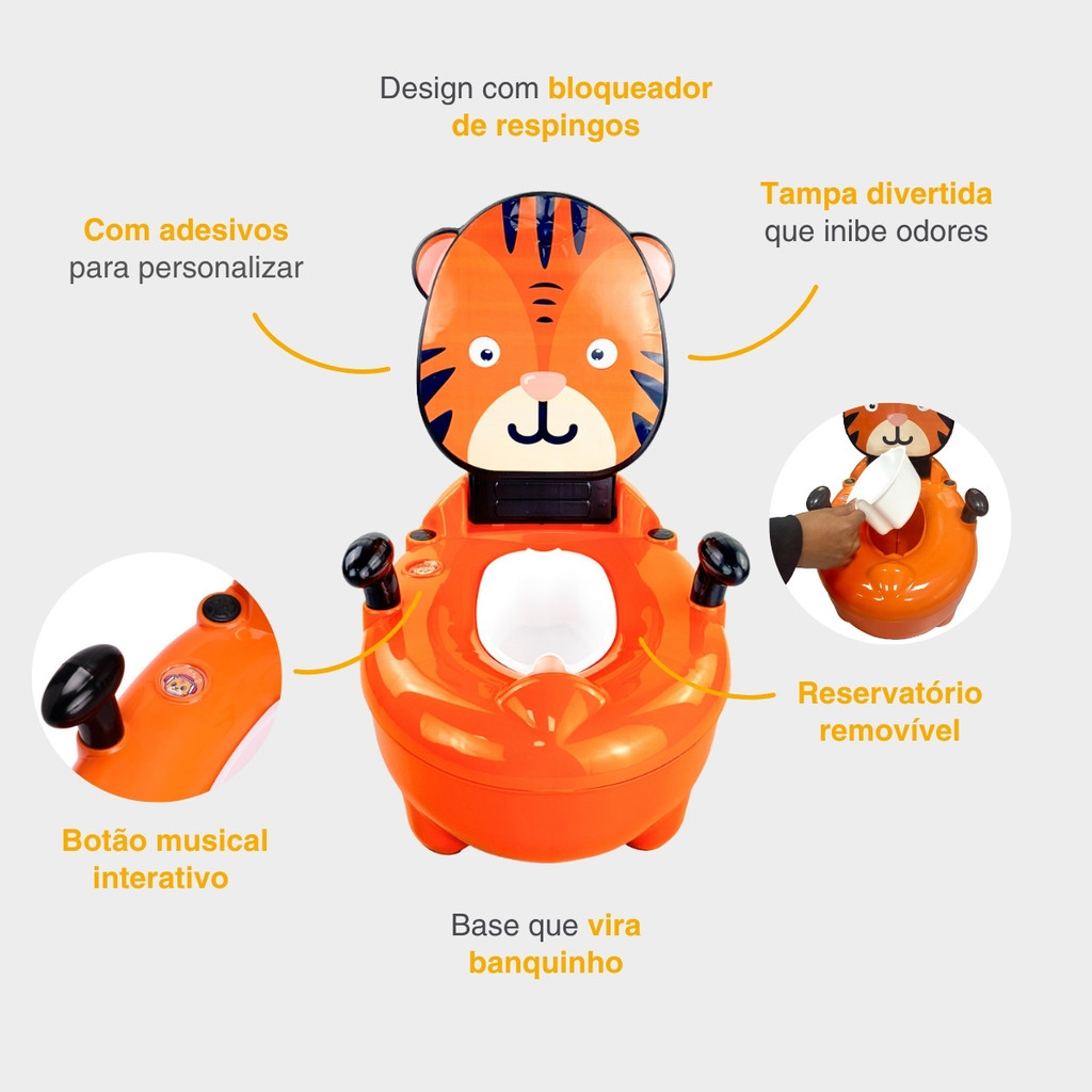 Troninho Penico Infantil Musical Desfralde Tigre Replay Kids