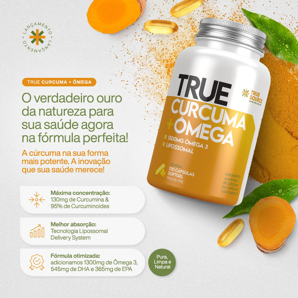 | True Cúrcuma + Ômega Lipossomal 120 Cápsulas True Source este produto | R$ 161,91 | 10% | 5.0/5 | 1 |