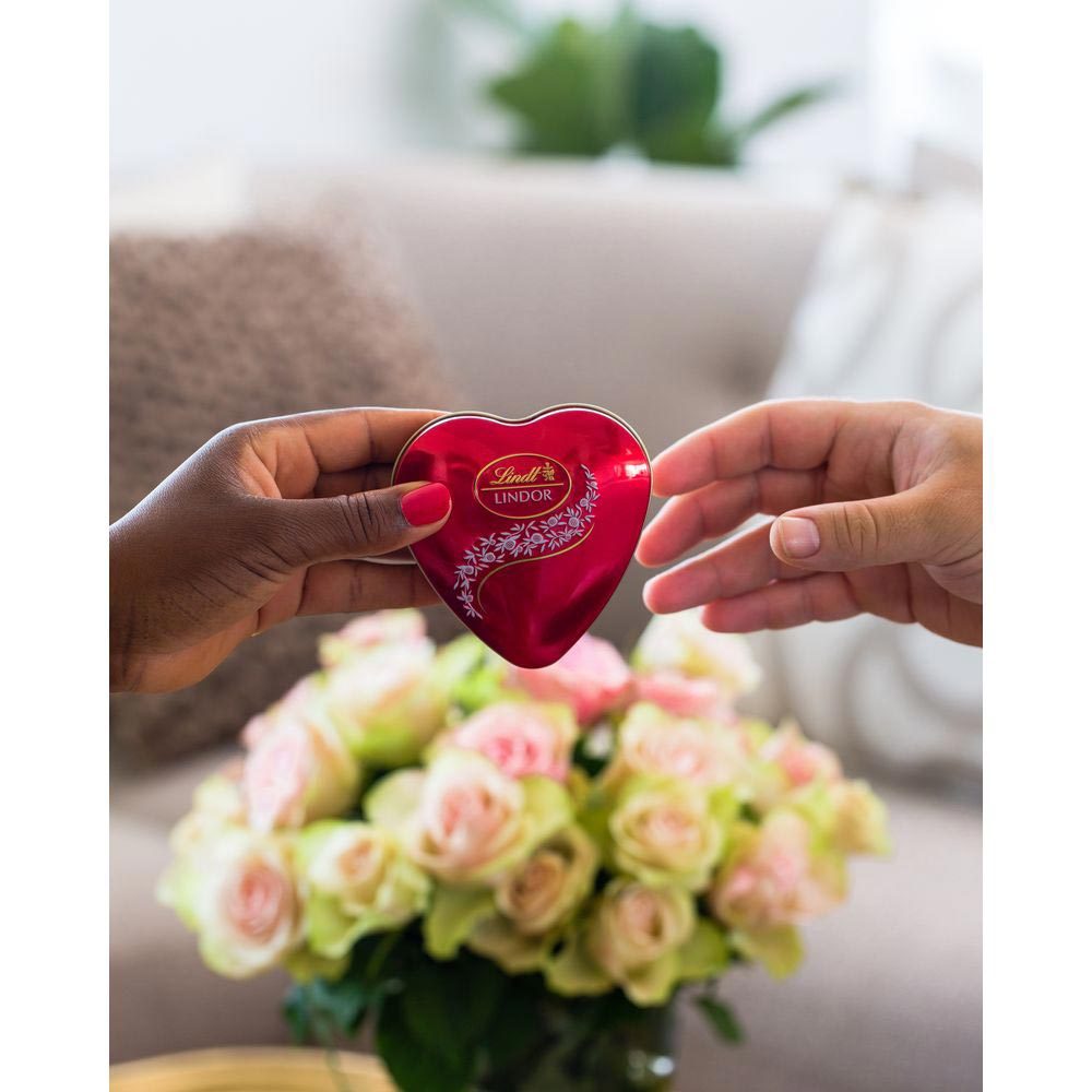 Uma ocasião especial fica completa com o presente perfeito. A lata Lindt Lindor em formato de coração é o presente ideal para surpreender quem você ama! Seus 4 bombons de 12.5g possuem um recheio crem