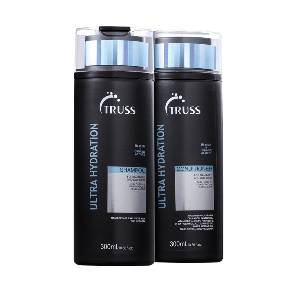 Kit Truss Ultra Hidratyon – Shampoo + Condicionador - 300ml Kit diário de hidratação para cabelos secos e danificados. Kit Truss Ultra Hydration Duo recupera a maciez, movimento e brilho dos fios ressecados por químicas, coloração ou danos do dia a dia. Kit Truss Ultra Hydration Duo repõe a umidade perdida e as proteínas que deixam o cabelo resistente. Ele também sela as cutículas, o que mantém seus ativos dentro do fibra capilar, disciplina e resgata a maleabilidade natural para fios saudáveis, sedosos e protegidos. Kit contém Truss Ultra Hydration - Shampoo 300ml: Limpa e restaura a hidratação perdida por mais tempo. Truss Ultra Hydration - Condicionador 300ml: Desembaraça e hidrata os fios de forma imediata.