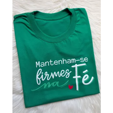 NOSSA FORMA É GRANDE. NÃO É NECESSÁRIO PEGAR TAMANHO MAIOR QUE O SEU. T-shirt 100% ALGODÃO – Fio 30 Penteado. Primeira qualidade Gola de Ribana e Ombro a Ombro. Padrão: liso com estampa em Silk Cada modelo é de cor única. T-shirt Estampa- Jesus Caminho Preto - Silk Estampa- Violão Lilás - Silk Estampa- Porque Ele Vive Verde - Silk Estampa- Onde Há Fé Marsala - Silk com relevo TAMANHO P: Veste tamanho: 36/38 -Comprimento: 57cm -Cintura: 86cm - Busto: 94cm TAMANHO M: Veste tamanho: 38/40 -Comprimento: 60cm -Cintura: 94cm -Busto: 102cm TAMANHO G: Veste tamanho: 42/46 -Comprimento: 61cm -Cintura: 102cm -Busto: 112cm TAMANHO GG: Veste tamanho: 46/50 -Comprimento: 71cm -Cintura: 118cm -Busto: 122cm FAÇA JÁ O SEU PEDIDO!!!ENVIAMOS PARA TODO BRASIL. JESUS TE AMA.