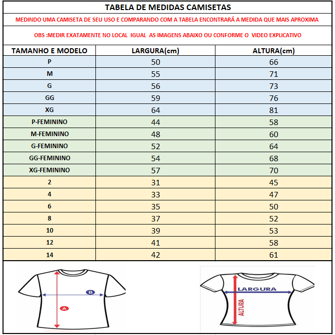 BEM VINDOS A Loja SHOPP_CAMISETAS =============================================================================================================SOMOS FABRICANTES E NOSSAS PEÇAS SÃO FEITAS COM MUITO CARINHO *Produto confeccionado e disponibilizado as compras serão enviadas no mesmo dia ou se comprado após meio dia seguirá do dia posterior *AS FEMININAS SÃO babylook com medidas AUMENTADAS, formato babylook porém um pouco maior *AS INFANTIS são unissex formato tradicional *AS MASCULINAS são formato tradicional DETALHES DO PRODUTO: As camisetas são personalizadas com o método sublimação. As estampas são resistentes a lavagens e ao uso diário, mantendo as cores sem desbotar, tecido fácil de lavar, não precisa passar. Material: O tecido é POLIÉSTER com ELASTANO Gola redonda (careca). ENVIO: A ENTREGA é realizada pelo SITE, na simulação de compra é possível verificar a data prevista de entrega de acordo com seu CEP. Após a postagem, a única informação que temos é pelo código de rastreio, não conseguimos interferir neste serviço, Por isso é IMPORTANTE, que verifique seu ENDEREÇO no CADASTRO antes da compra (ENDEREÇO DE ENVIO, CEP, NÚMERO E TELEFONE PARA CONTATO). Após a compra não será possível fazer alteração no endereço de envio. ======================================================================= DUVUDAS FREQUENTES * VOCÊS POSSUEM OUTRAS ESTAMPAS? Sim. Possuímos um catálogo com estampas variadas, basta ir em ver mais anúncios do vendedor. * COMO FAÇO PARA COMPRAR 2 OU MAIS CAMISETAS UTILIZANDO O MESMO FRETE? Basta adicionar as peças desejadas em seu “carrinho” e finalizar a compra de uma única vez! Lembrando que, para que haja um único frete, todos os produtos devem ser do mesmo vendedor. Agradecemos