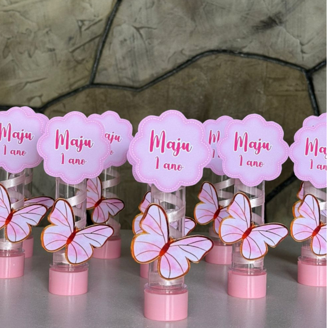 Tubetes Personalizados com Nome e Borboleta – Lembrancinha aniversário Jardim encantado das borboletas 13cm